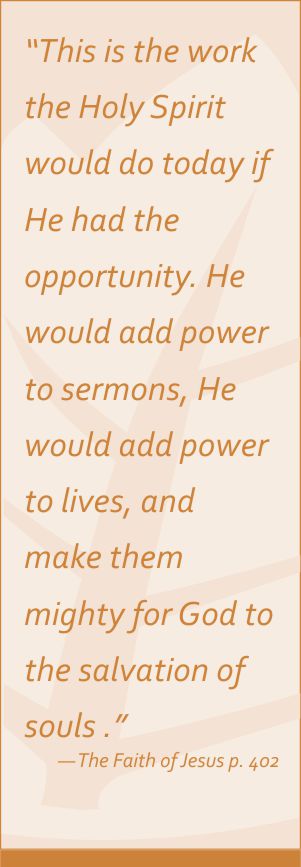 “Ye shall receive power, after that the Holy Ghost is come upon you: and ye shall be witnesses unto me.” – Acts 1:8. All the knowledge of the world can do little to change men’s lives unless accompanied by the power of the Holy Spirit. It would be natural to think that after the disciples had been three years with Christ they would be qualified for their work. But Christ asked them to tarry in Jerusalem until they should be endued with power from on high. He told them that it would be useless to go anywhere – even after they had been in His school three years – until they received the Holy Ghost.