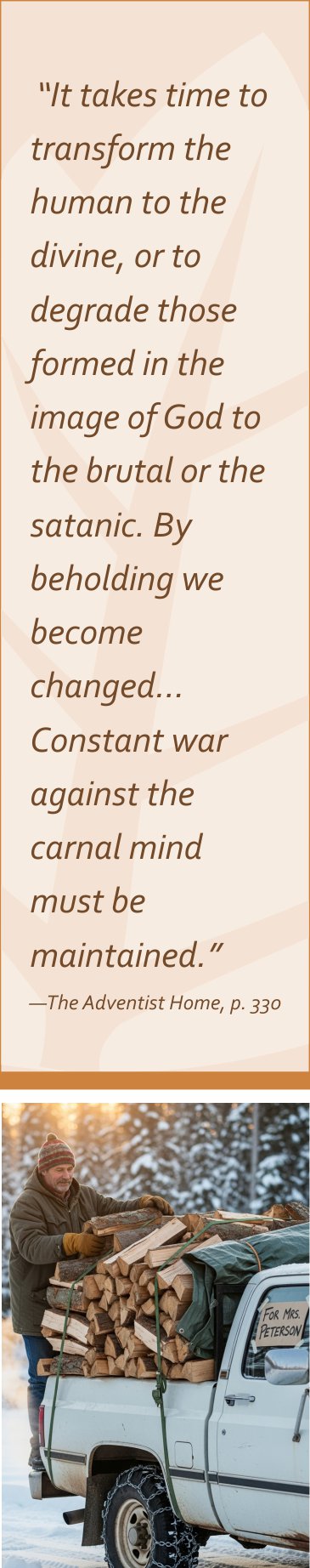 As we choose to accept the wooing and leading of the Holy Spirit, we focus on the victory in Jesus and the more we focus on Him, the more we become like Him. “Looking unto Jesus we obtain brighter and more distinct views of God, and by beholding we become changed. Goodness, love for our fellow men, becomes our natural instinct. We develop a character which is the counterpart of the divine character.” – Christ's Object Lessons, p.355