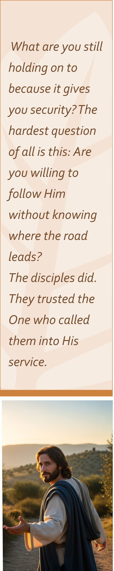 The disciples did. They walked away from boats full of fish and never went back. They forsook all — not because they understood everything, but because they trusted the One who called them into His service.