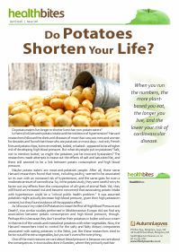 This was confirmed in the NIH-AARP study, the largest such study of diet and health in human history. If you separate out just the potatoes, researchers find they are not associated with increased risk of death, with the possible exception of French fries, which are associated with an increased risk of dying from cancer. Put all the studies together—20 in all—and no significant association has been found between potato consumption and mortality, though again, fried potatoes may be the exception. Even just twice a week, fries may double one’s risk of dying prematurely, independently of other factors, but the consumption of unfried potatoes seemed to be neutral.