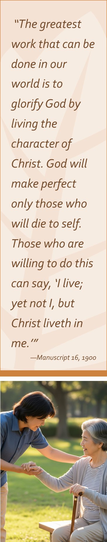 What beauty of character shone forth in the daily life of Christ! He is to be our pattern. There is a great work to be done in fashioning our character after the divine similitude. The grace of Christ must mold our entire being, and its triumph will not be complete until the heavenly universe shall witness habitual tenderness of feeling, Christlike love, and holy deeds in the deportment in the children of God.