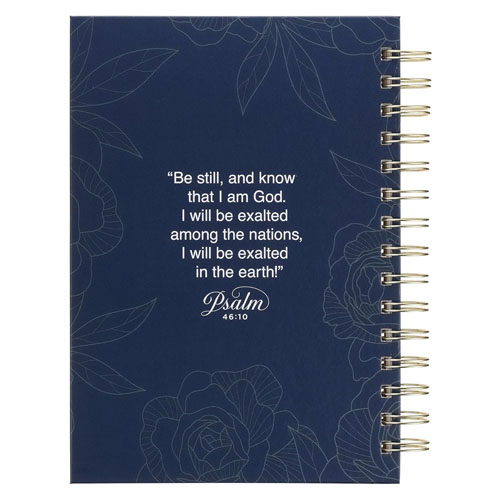 design. At the centre of the design, a navy blue frame holds the scripture: Be still and know Psalm 46:10.