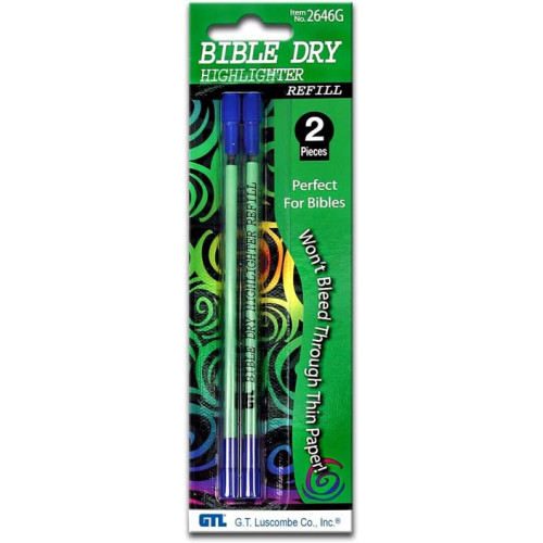 This Refill pack for the Bible Dry Highlighters is Blue and has two in the pack. Choose the economic..