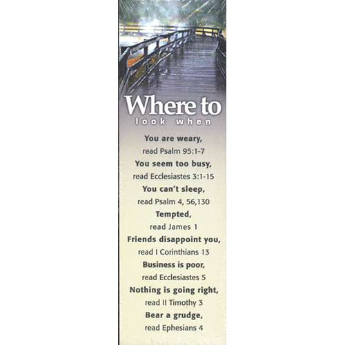 Find the verse you need quickly with subjects listed right on your Where to Look bookmark. Topics include: