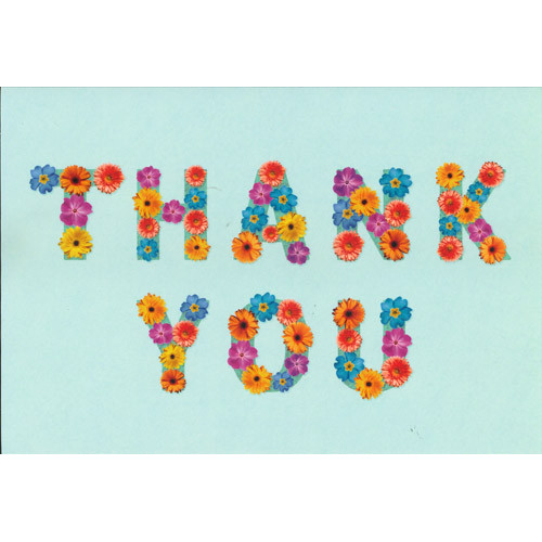 Featuring "Thank You" made from newsprint letters on the cover.Message on the inside: "You are such ..