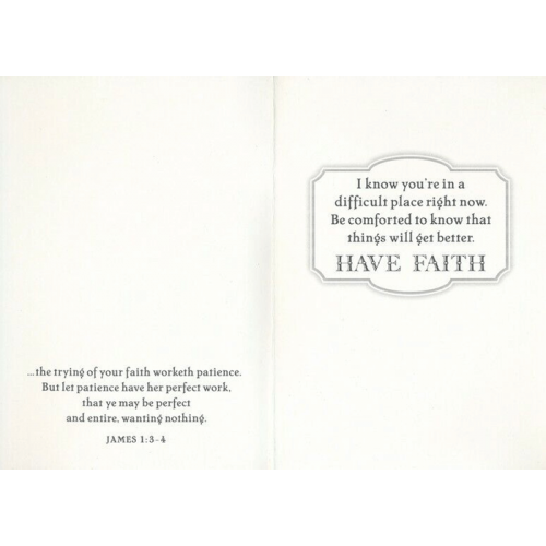 Uplifting sentiment:I know you're in a difficult place right now. Be comforted to know that things will get better. HAVE FAITH.