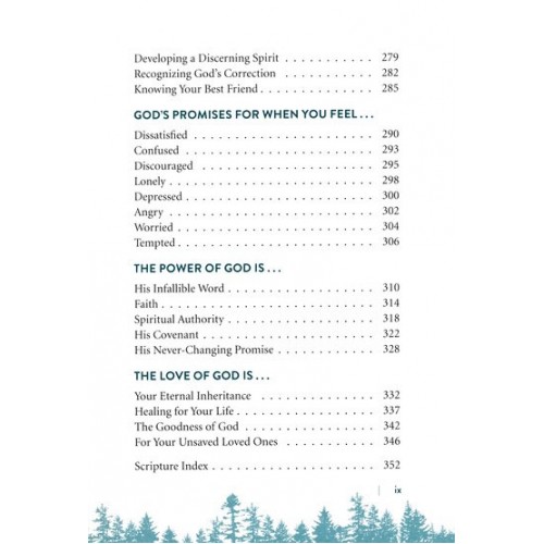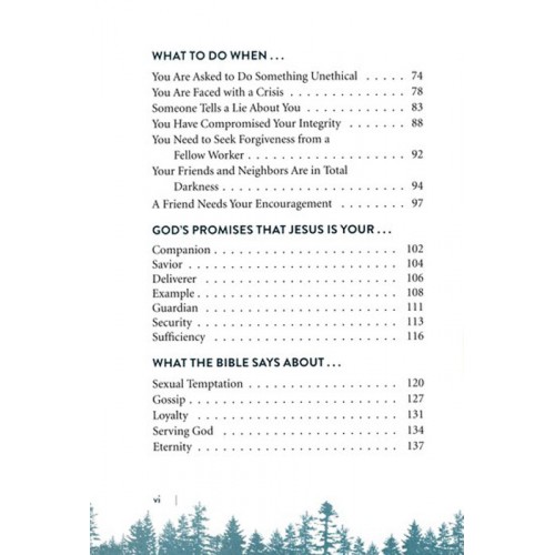 More than 90 important topics include God's guidance on relationships, finances, difficult situations, frightening scenarios, ethical issues, and when a friend needs encouragement, as well as what the Bible says about mercy, loyalty, caring for others, disagreements, faithfulness, and obedience, among many others.