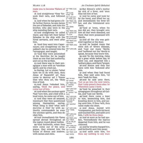 Experience the literary beauty of the King James Version in a giant-print format with Thomas Nelson's custom comfort print font. Your eyes will discover a whole new level of readability without sacrificing study features. Complete with center-column references, book introductions, a concordance, words of Christ in red, and full-color maps, this will be the go-to Bible you'll look forward to reading.