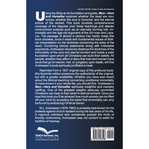 The passage of almost a century has hardly made this book obsolete, since it deals with fundamental issues of Biblical interpretation on the doctrines concerning the state of the dead. Combining biblical statements along with irrefutable arguments, Andreasen decisively destroys the doctrines of the immortality of the soul and eternal torment and builds a solid foundation upon which all Christians can build their beliefs.