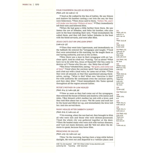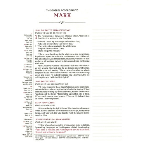 - Words of Christ in red quickly identify verses spoken by Jesus