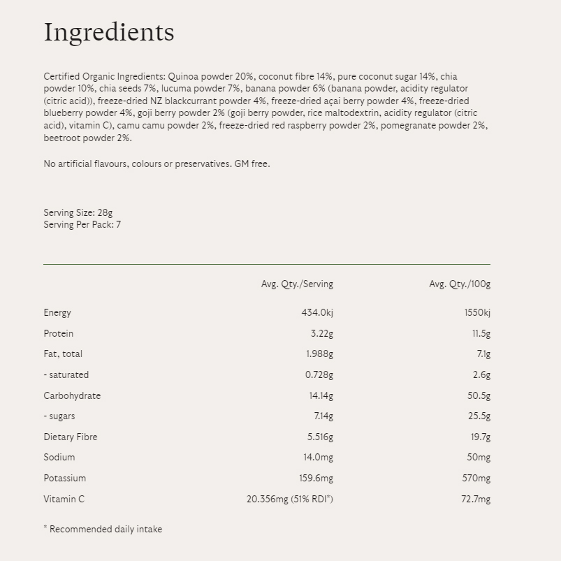 Experience the power of nourishing red, purple and black pigment superfruits in an easy-to-use powde..