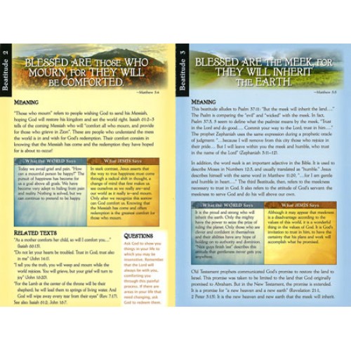 Understanding the Beatitudes will help Christians learn how to live the "Kingdom" life. Those who follow Jesus will be inspired and challenged to live out these attributes in contrast to worldly values: