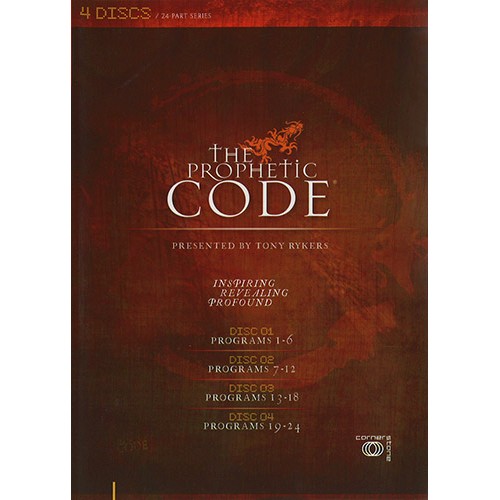 These DVD's contain the complete set of The Prophetic Code messages presented by Tony Rykers a commentator, speaker, and historian on the subjects of the ancient codes, symbols and prophecies of Scripture. Four DVD's containing 24 inspiring and profound messages.