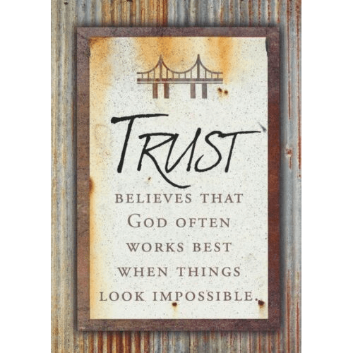 An encouragement card with Trust believes that God often works best when things look impossible on the cover.