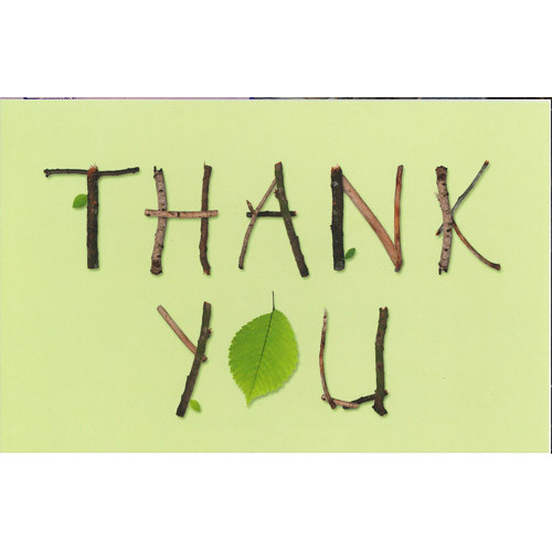 Featuring "Thank You" made from twigs and leaf on the cover.