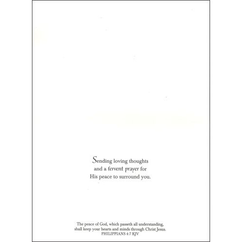 Message on inside: "Sending loving thoughts and a fervent prayer for His peace to surround you." with quote from Philippians 4:7.